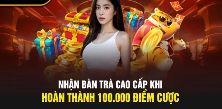 - Nhận bàn trà cao cấp khi hoàn thành 100.000 điểm cược: Đạt mốc cược 100.000 điểm sẽ nhận được một bộ bàn trà cao cấp miễn phí.